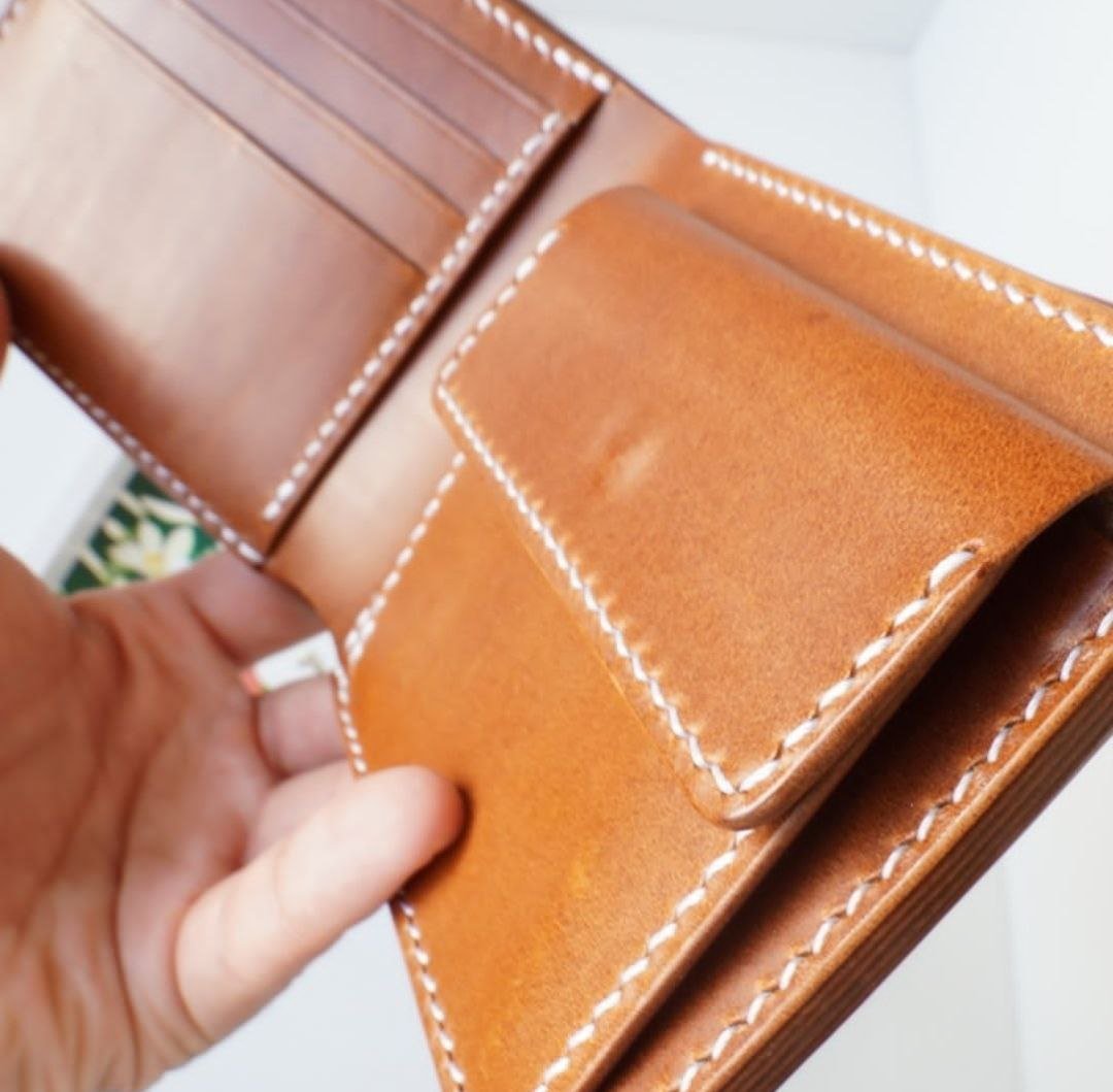 The wallet has a large compartment for bills, 3 pockets for cards and a small coin compartment