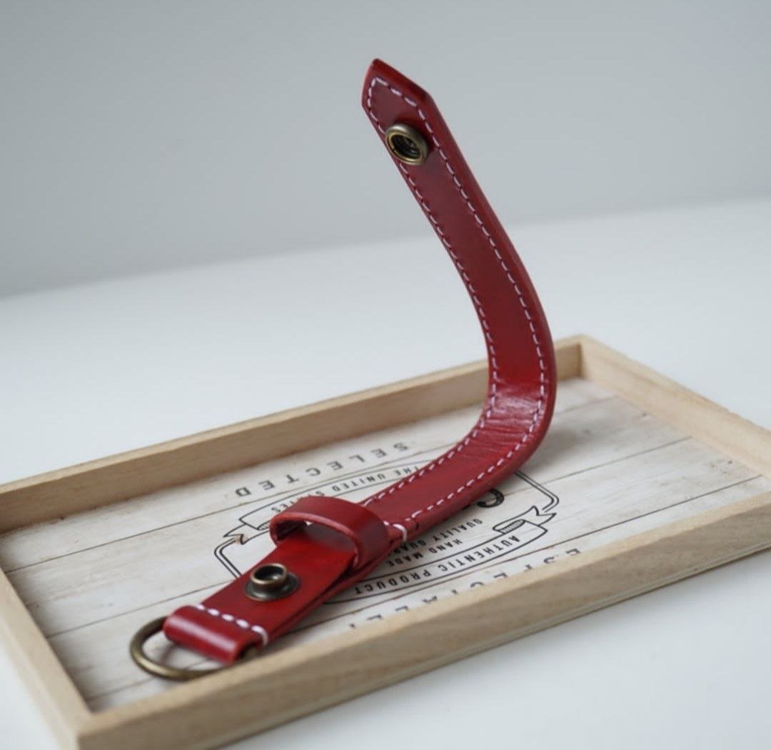 Keychain made of genuine leather. An original accessory for a bag, backpack or keys. A miniature, convenient carabiner allows you to always carry the bot with you.