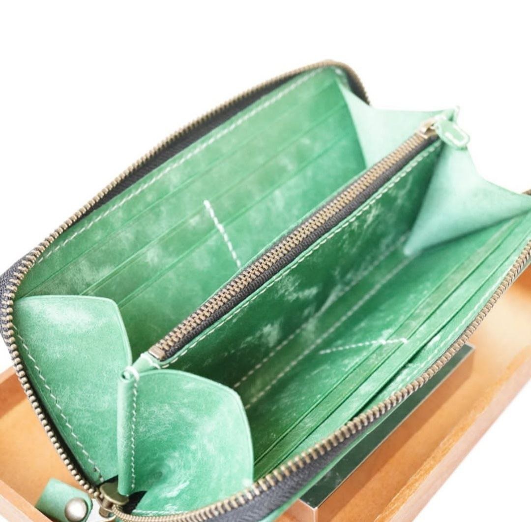 The wallet can hold at least 8 plastic cards, a smartphone, bills in an unfolded form. The rounded delayed edges of the wallet give the model a special chic, emphasizing its originality. Closes with a zipper.